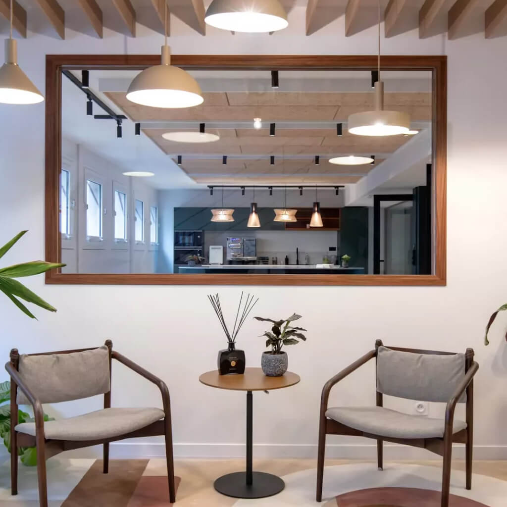 Après un curage complet des anciens aménagements, le comblement d’une trémie devenue inutile et l’optimisation des espaces, nous avons conçu un projet architectural chaleureux apportant plus de luminosité, de confort et de flexibilité, tout en maximisant la capacité d’accueil des plateaux.